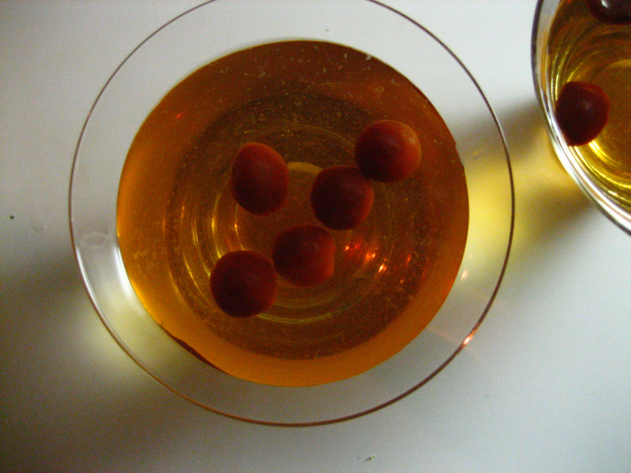 We’ve taken to the trend of buying odd liquors and mixing them with more familiar ingredients. Most recently, we read about the Aviation cocktail, which is a mix of gin, Creme de Violette (yes, a liqueur made with violets), a bit of lemon, and Maraschino Liqueur. The mix is quite good, but comes off a little too overworked for my tastes. I like simpler drinks, with less ingredients, I think. The Maraschino is quite sweet, but has a nice refreshing flavor, so it seemed to us to be a likely candidate for mixing in another application. Drinking it straight is simply too cloying.